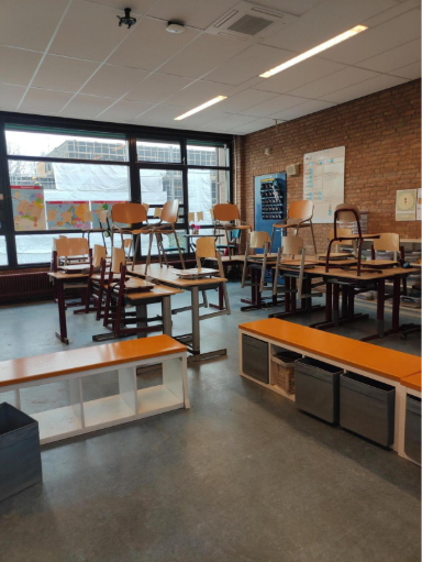 Het bureau van de juf is wel een troep, daar liggen veel papieren.