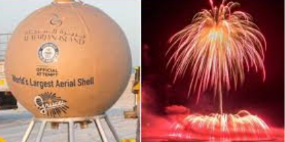 Leuke feitje: De grootste vuurwerk ooit was een shell. Het werd in Ras Al Khaimah namelijk afgestoken. Het werd afgestoken in 2018. Het was een 62 Inch shell (ongeveer 1,6 meter) en had ook de grootste effect. Namelijk een een bloem effect die een diameter van 1 KILOMETER HAD!!!
